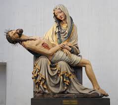 There is, of course, another icon of our faith that has been with us through the centuries, a picture that has always been holy to us: the Pietà. Mary, the Mother of God, holds the broken body of her son after his death. Sometimes, her head is bowed, tears flowing to him as the more direct sign of her emotion. In others, she gazes out at you, the observer, directly as if to say, “look what the world has wrought of my love.”
